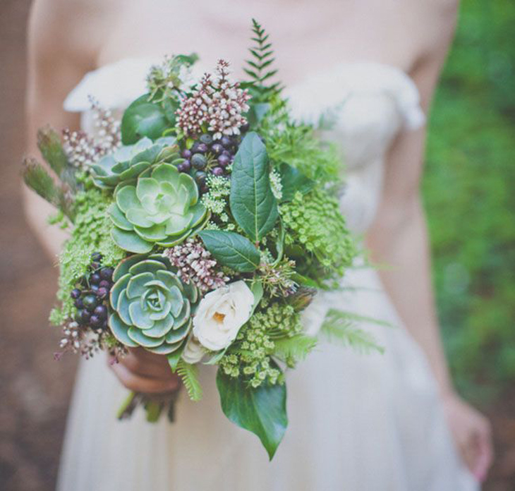 В 2016 году основной тенденцией для образа невесты будут сливочные и розоватые тона платьев с открытыми плечами или открытой спиной, букеты из роз и суккулентов и цветы в волосах.