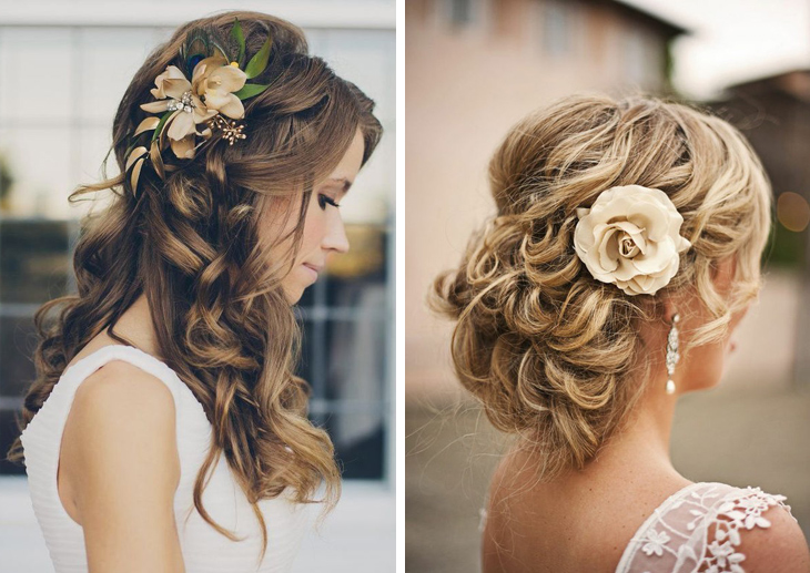 Относительно прически действует одно единственное правило - модно все, что сделано без особых усилий и тонны стайлеров. Естесственность прежде всего - распущенные волосы, собранный на скорую руку пучок. Не забудьте украсить прическу цветами.