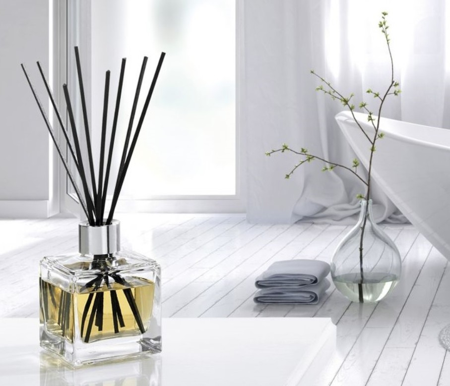 Домашній дифузор являє собою декоративну ємність, заповнену спеціальною речовиною, парфумерним маслом. У неї вставляються очеретяні або дерев'яні палички. Ароматична рідина поступово випаровується і поширює по приміщенню парфумерну композицію. Це натуральна і безпечна альтернатива хімічним спреям і розпилювачів.