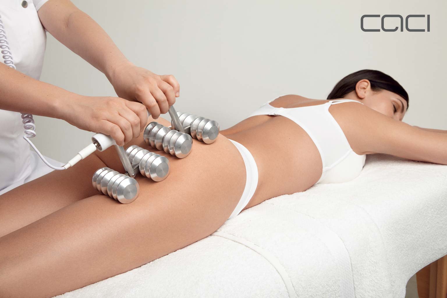 Багатофункціональна система CACI Synergy з технологією подвійної дії S.P.E.D® – це не тільки точні мікроструми, а й терапевтична LED-терапія. Їх позитивний ефект, безпека та безболісність доведені клінічно. Під впливом спеціальних ролер активізуються внутрішні процеси. Апарат руйнує жирові відкладення, масажує в'ялі м'язи, прискорює циркуляцію крові та лімфодренаж. За рахунок чого зменшується обсяг, зникає «апельсинова кірка», м'язи та шкіра приходять у тонус. Завдяки чому легко прибрати розтяжки, нерівності і навіть кілька зайвих сантиметрів і вже за кілька тижнів виглядати більш підтягнутим та привабливим.
